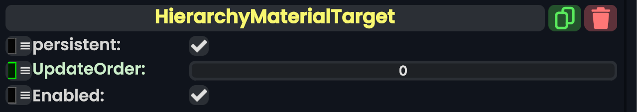 | 02:51, 11 February 2024 | HierarchyMaterialTargetComponent.png (file) | 34 KB | AmasterAmaster (talk | contribs) | Image that shows the "HierarchyMaterialTarget" component. | 1 | |