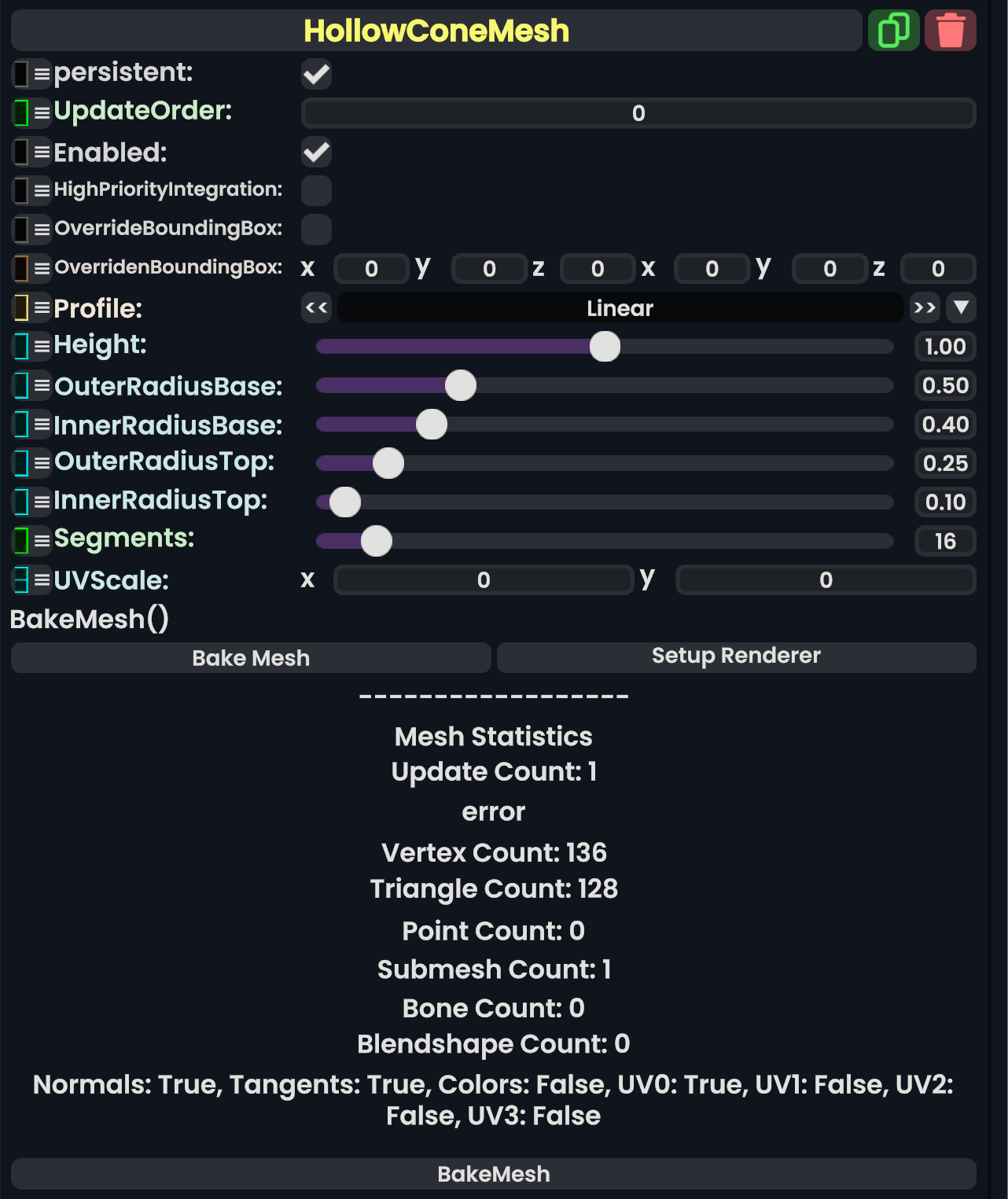 | 02:53, 11 February 2024 | HollowConeMeshComponent.png (file) | 245 KB | AmasterAmaster (talk | contribs) | Image that shows the "HollowConeMesh" component. | 1 | |
