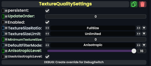 The TextureQualitySettings component is part of the Settings menu and should be interacted with via such menu instead of through this component.