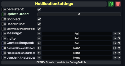 Notification Settings component as seen in the Scene Inspector