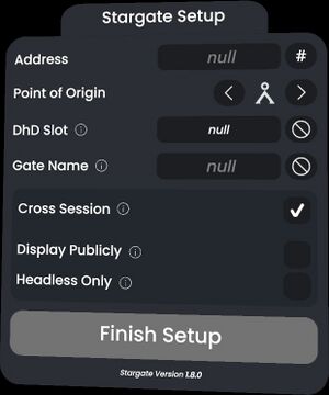 The Stargate System made by Ancients of Resonite is a set of specially designed devices allowing you travel vast distances in a world, or travel between sessions. The primary purpose is for use in Headless sessions so people can come and go through the stargate.