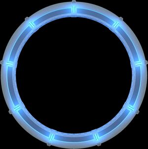 The Pegasus Stargate is the model portrayed in Stargate Atlantis. It has blue Chevrons and a static glyph ring consisting of digital screens. They are often found without a Ramp, instead partially embedded into the ground with a Dial Home Device nearby.