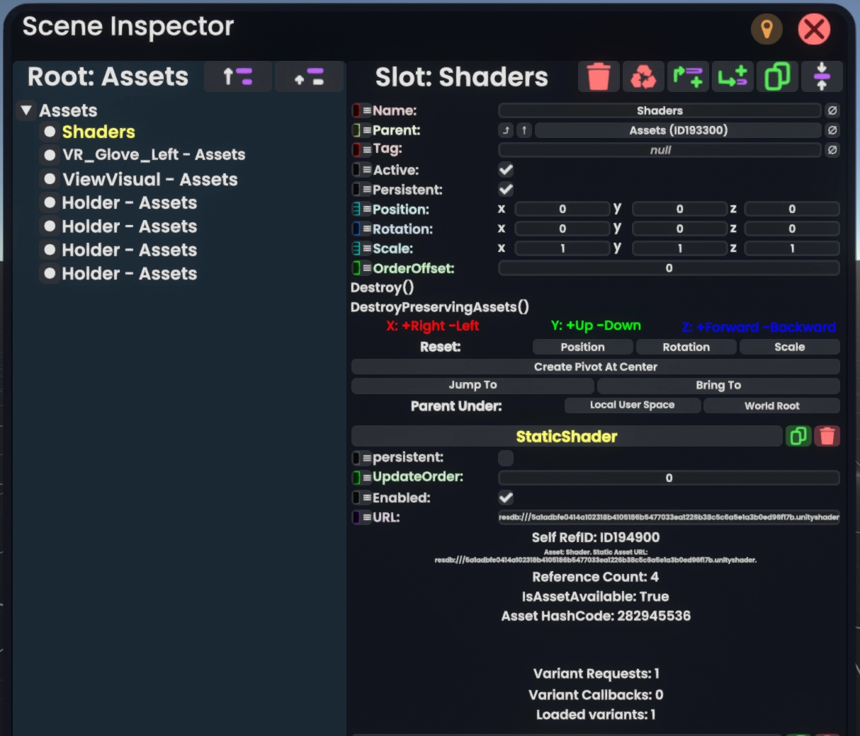 Assets Slot on a mostly-empty world, as shown in the Scene Inspector.