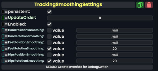 Tracking Smoothing Settings component as seen in the Scene Inspector